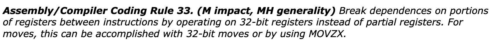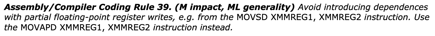 But partial SIMD/FLAGS register stall is an instruction selection issue instead of register selection. Let’s finish this section and move on.
